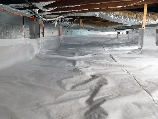 We confirm all penetrations are sealed, the vapor barrier is properly overlapped, and the crawl space is fully encapsulated.